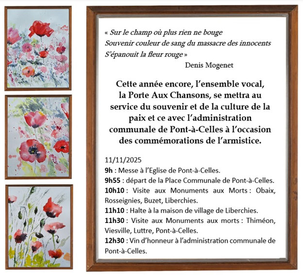 Nous tenons tout particulièrement à remercier, notre ami choriste, Denis Mogenet qui en plus de chanter avec nous, réalise des magnifiques aquarelles et poèmes.